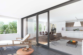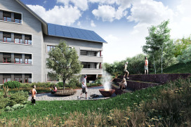 Über die bereits bestehende Garagenzufahrt der Nachbarliegenschaft ist die Tiefgarage erschlossen. Die natürlich eingepflegte Umgebung besticht durch eine Vielzahl kleiner Aussenräume, Spiel- und Aufenthaltsflächen und bietet periphär den Zugang zu den umliegenden Wohnbauten.