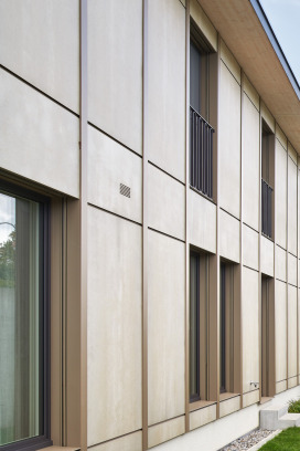 Die farblich abgestimmte Duripanelfassade macht dieses Objekt zu einem Blickfang.