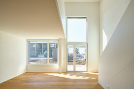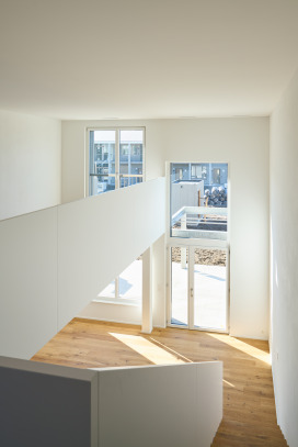 In den ersten beiden Stockwerken des Mehrfamilienhauses liegen die 3 ½-, 4 ½- und 5 ½ - Duplex - Wohnungen mit eigenem Garten. Dank der Hanglage hat die untere Etage direkten Zugang zur Tiefgarage und die obere Etage einen Vorgarten und Zugang zur öffentlichen Freifläche. Im obersten Geschoss des Gebäudes befinden sich 2 ½ - und 3 ½-Zimmer-Wohnungen mit Laubengang und einer grosszügigen Loggia mit viel Privatsphäre.