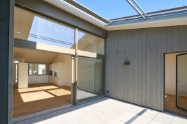 Je nach Typ verfügen die Häuser über Flächen von 180 bis 208 Quadratmetern. Sie sind in kleinen Gruppen angeordnet und verfügen zum Innenhof hin über einen dazugehörigen Aussenbereich mit eigenem Gartenhaus. Der abwechslungsreiche und naturnah gestaltete Innenhof lädt zum Spielen und zu Begegnungen ein. Neben Spielinseln und Erschliessungswegen befinden sich hier überdachte Veloabstellplätze. Auf der Strassenseite bildet die Veranda einen geschützten, vielseitig nutzbaren Aussenbereich.
