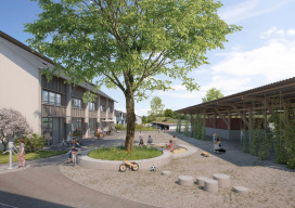 zentralen Aussenraum hin orientieren sich die Zugänge der Wohnhäuser, dem