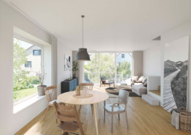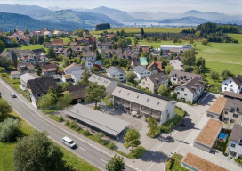Zugang zur Tiefgarage, Veloabstellfläche sowie einen überdachten Gemeinschaftsraum.