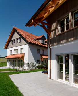 In Rossau, einem Aussenweiler der Gemeinde Mettmenstetten, realisierte Baureal im Auftrag einer Immobiliengesellschaft diese kleine Wohnüberbauung. Damals ein Gehöft mit Bauernhaus, Trotte und Remise, bilden heute 7 denkmalgeschützte Ersatzbauten ein interessantes Ensemble.